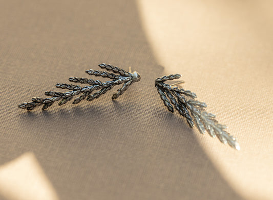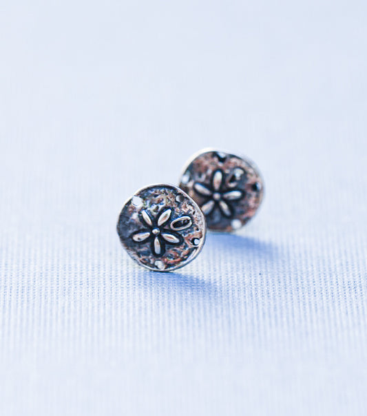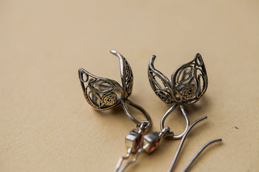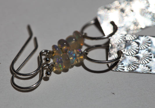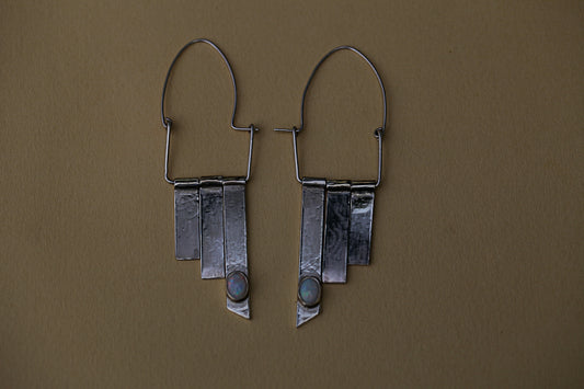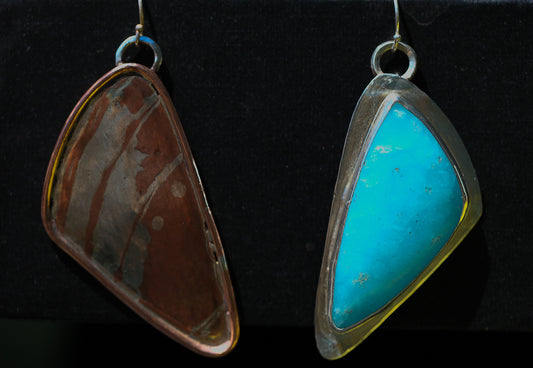 Mokume Gane Butterfly Wing Earrings w. Hemimorphite Cabochon