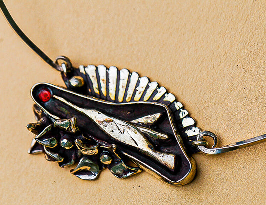 Starry Night Chartreuse Art Seaglass Vessel Necklace