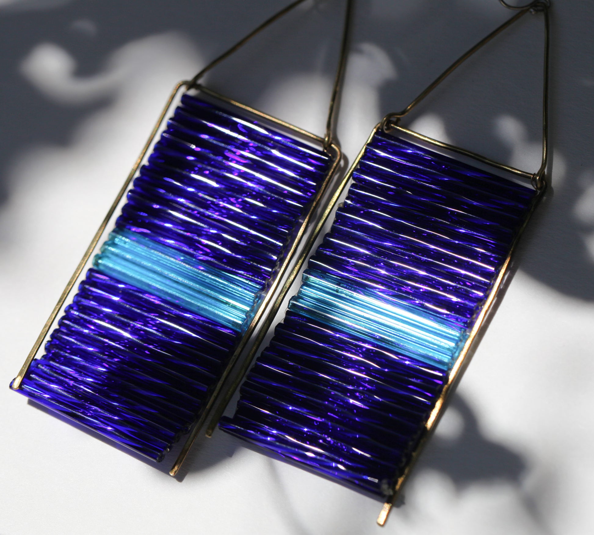 Beaded two tone glass and brass earrings bring the fluidity and beauty of the water into an easily wearable form, glimmering up an outfit with some statement sparkle. Hooks are made of sterling silver.